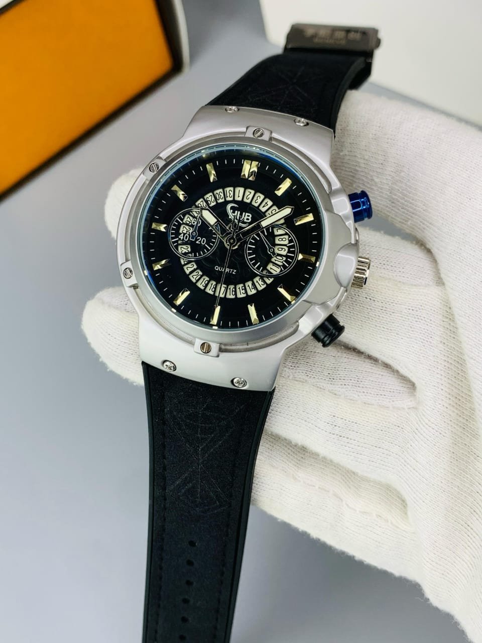 HUB- Black Belt Silver case Black Dial