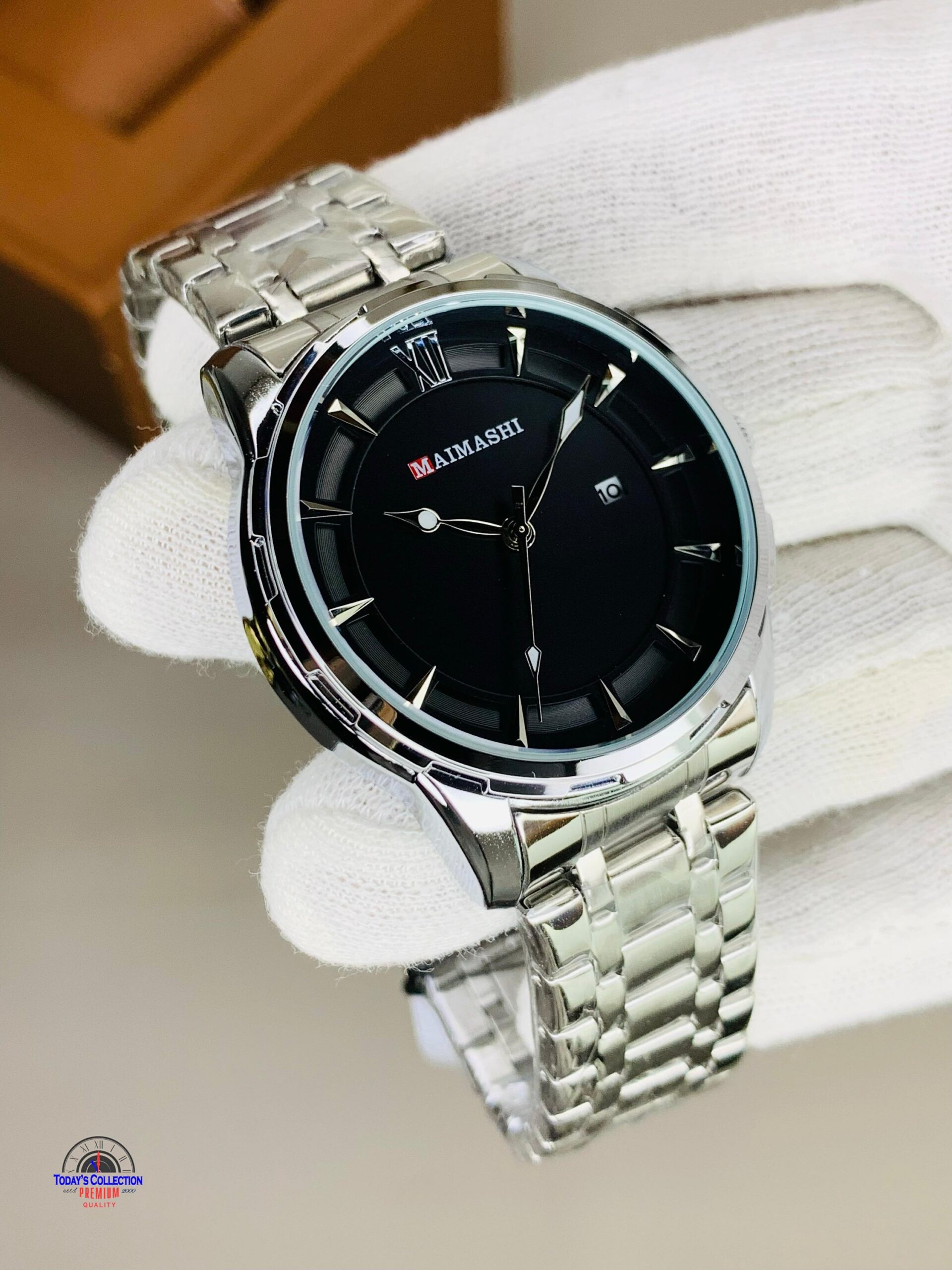 MI- Silver Chain Black Dial